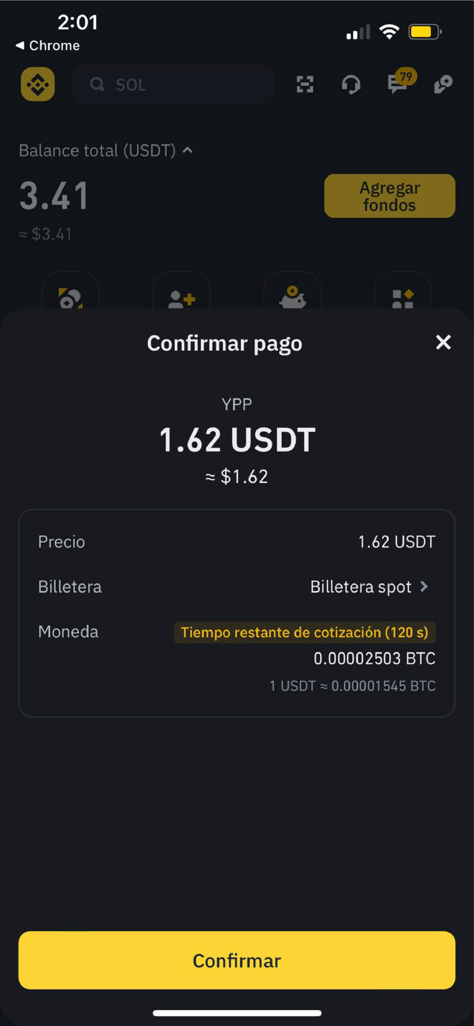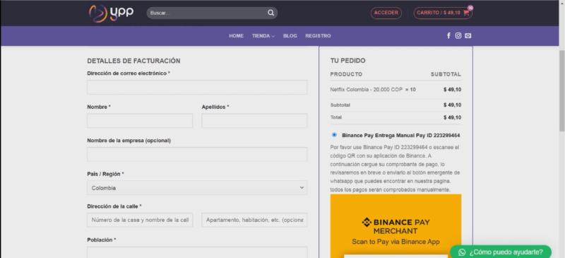 Escoge “Binance Pay” te redirigirá a la pagina de binance si estas en el celular te dará la opción de iniciar sesión si manejas desde el computador puedes leer el código que sale directamente de binance después de la redirección te devolvemos a la página y podrás ver tu pedido de manera inmediata
