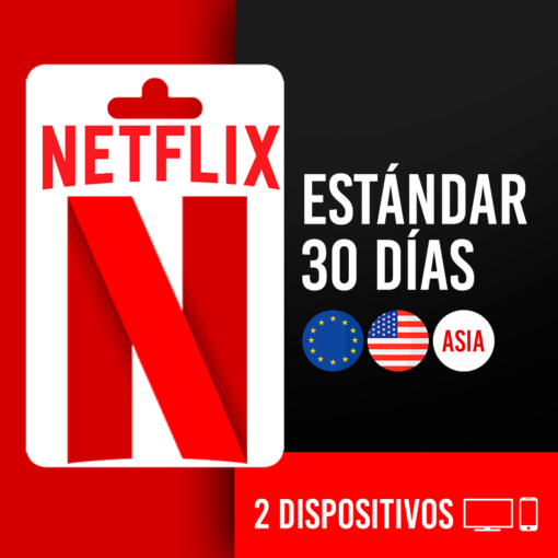 Netflix Estándar 30 Días – 2 Dispositivos (EEUU-Europa-Asia)