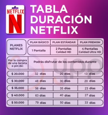 - Precios Competitivos en Colombia: Descubre los precios de Netflix en Colombia y encuentra tarjetas regalo Netflix y pines de Netflix a precios competitivos en nuestra plataforma. Nos esforzamos por ofrecer tarifas justas para que puedas disfrutar del contenido que te encanta sin gastar de más.